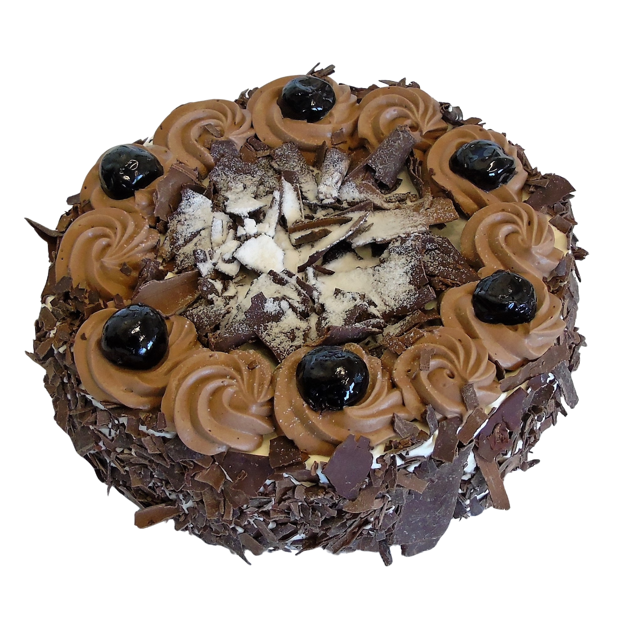 Génoise cacao garni de chantilly et de cerises confites - Congelée