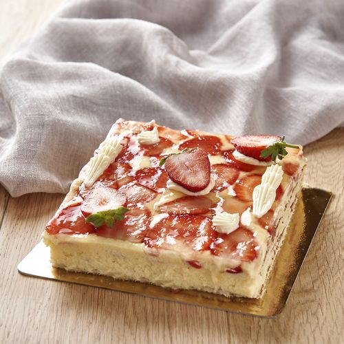 crème mousseline 50,6% (crème pâtissière (eau, sucre, LAIT écrémé en poudre, amidon, amidon modifié (maïs), colorant (E160a), arôme, sel, denrée alimentaire colorante (concentré de paprika), OEUF), BEURRE), fraises 30,6%, feuille suprême nature 10,7% (OEUFS entiers, sucre, farine de BLE, eau, blanc d’OEUF (blanc d’OEUF, épaississant : E415), stabilisant : E420 E422, fibres d’AVOINE, émulsifiant : E472b E477 (sirop de glucose, poudre de LAIT écrémé, LAIT), poudre à lever : E450 E500 (BLE)), nappage (eau, sirop de glucose fructose, sucre, gélifiant : E440, correcteur d'acidité : E330 E332 E333, conservateur : E202, arôme naturel d'agrumes), sirop(eau, sucre), décor chocolat blanc (chocolat blanc (sucre, beurre de cacao, LAIT entier en poudre, émusilfiant : lécithine de SOJA, arôme naturel de vanille), poudre de de cacao colorants : concentré de carthane et spiruline), décor chocolat noir (masse de cacao, sucre, beurre de cacao, emulsifiant : lecithine de SOJA, arome naturel de vanille, amidon de mais, colorant : E100).