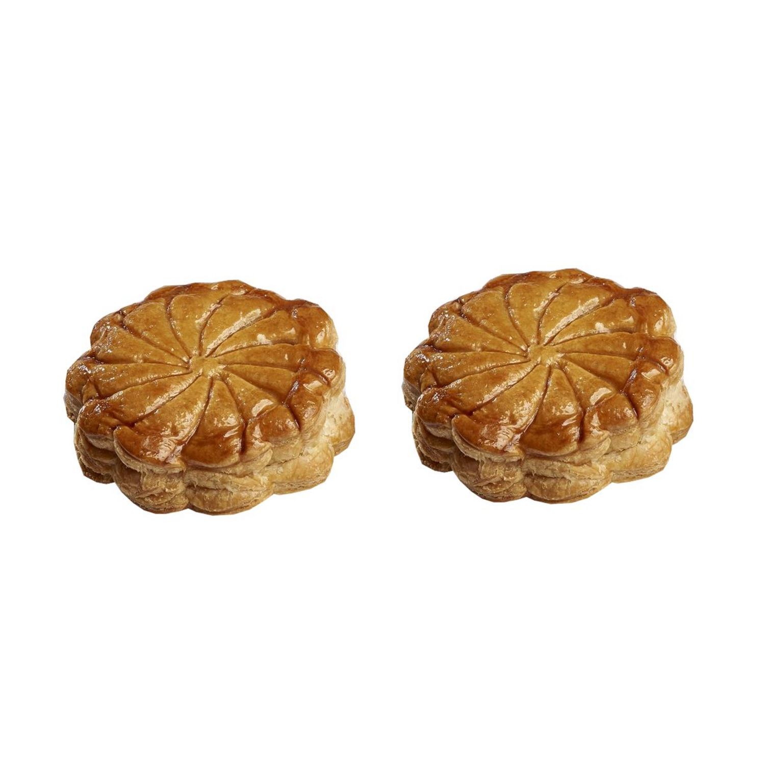 pate feuilletee 65,5% (farine BLE (GLUTEN), BEURRE (LAIT) 33%, eau, sel), frangipane 33% (sucre, BEURRE (LAIT) 22,5%, poudre d'AMANDES blanchies 22,5%, OEUFS, LAIT entier, farine de BLE, amidon de BLE, arome naturel d'AMANDE, arome naturel de vanille), dorure 1,5% (OEUFS), sirop (sucre, eau (eau)).