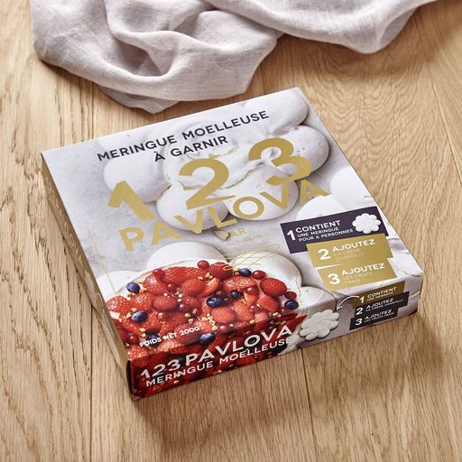 Ingrédients : Sucre (59%), blanc d'ŒUF (35%), farine de riz, vinaigre d'alcool blanc, extrait de vanille, épaississant : gomme xanthane.