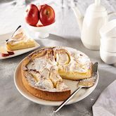 pommes 42%, farine de BLE (GLUTEN), CREME fraiche (LAIT) 14%, OEUFS entiers, BEURRE (LAIT), sucre, eau, sel, Décors neige(dextrose, amidon, matiere grasse de sal).
