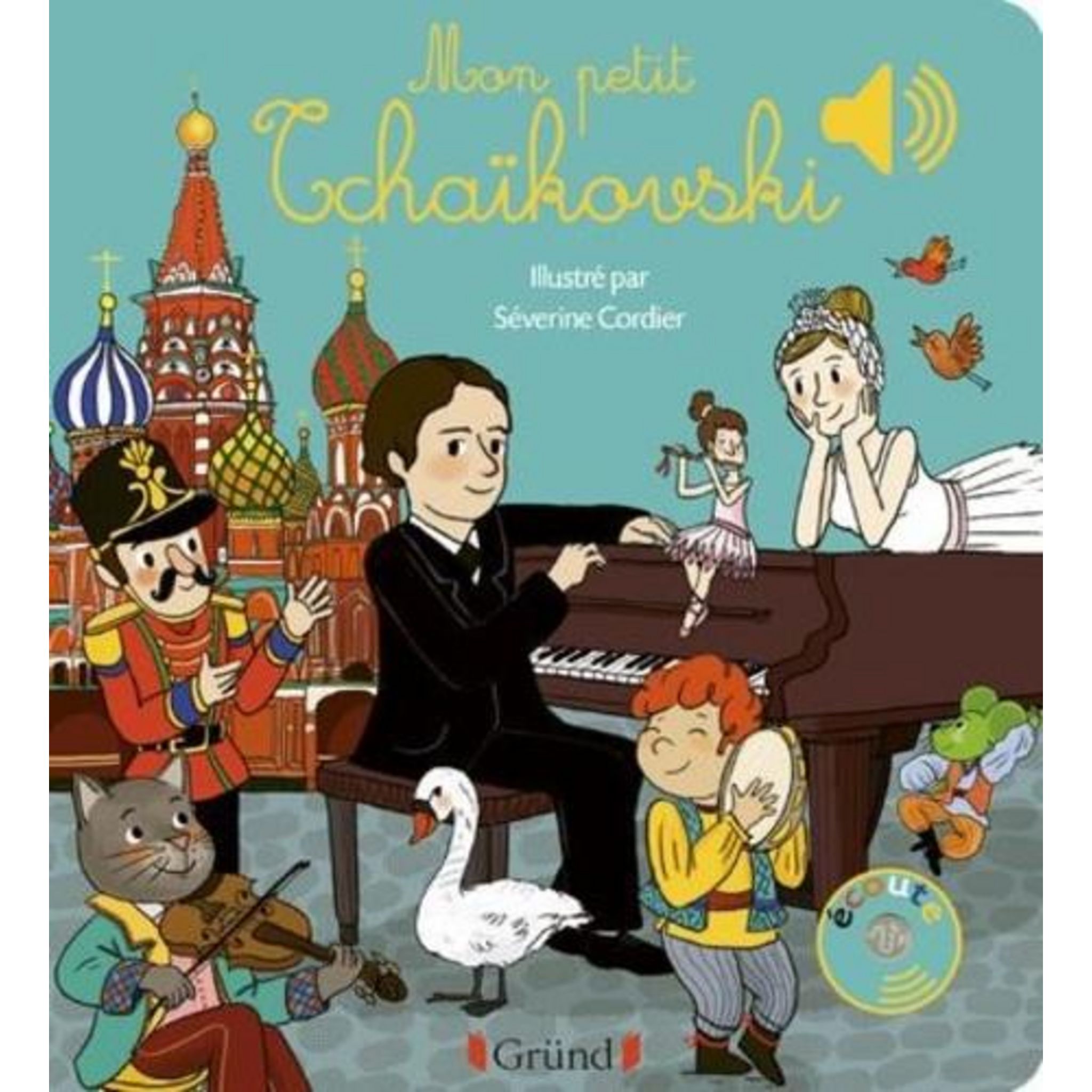 Tchaïkovski pour les petits ! Avec ses puces sonores musicales, ce recueil est unique. Sur chaque page, l'enfant recherche dans l'illustration le petit bouton qui déclenchera la musique. C'est une découverte des grands airs de Piotr Ilitch Tchaïkovski qui est proposée au fil des pages et des puces sonores de ce livre. On retrouve les grands airs de : Casse-noisette ( Danse russe et Danse des mirlitons ), La Belle au bois dormant ( La valse des guirlandes ) et Le Lac des cygnes ( Danse des petits cygnes et Moderato ) ainsi que le Concerto pour piano n°1 . Les illustrations de Séverine Cordier, adaptées aux petits, accompagnent cette première découverte.
