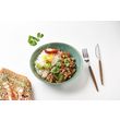 Ingredients : Chili 51,1% (haricots rouges 13,6%, viande bovine hachee 11,3% (origine France), poivrons rouge et vert 8%, tomates concassees 15,6% (tomates concassees 11%, coulis de tomates, sel, acidifiant :E330), oignons 2,9%, huile d olive vierge extra, concentre de tomate, mais doux en grains, piment doux moulu, cumin, ail), Riz cuit 48,3%(eau, riz long grain, fond de volaille (aromes (dont CELERI), amidon de pomme de terre, maltodextrine, sel, extrait de levure, volaille 2,8% (viande de poule 2%, graisse de poule), oignon, dextrose, jus de legumes concentre (CELERI, carotte, poireau, oignon), antioxydant :extrait de romarin), ciboulette, piment doux moulu.% exprimes sur le total de la recette.