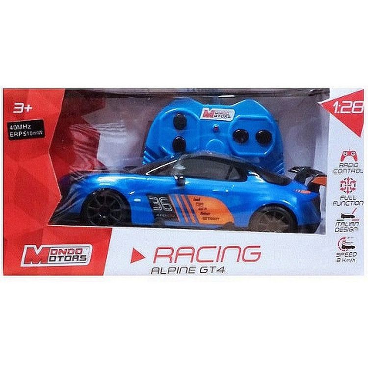 Alpine A110 GT4 radiocommandée. Échelle 1:28ème (17cm), toutes directions (Av/Arr/G/D), 27 ou 40MHz (selon dispo), 8 km/h, lexan body.