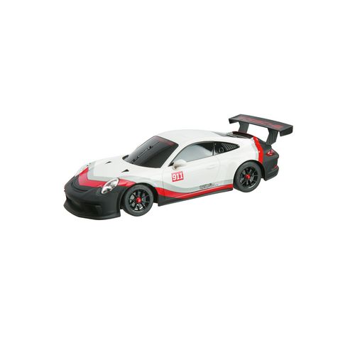 Porsche 911 GT3 Cup radiocommandée. Echelle : 1/18eme. Commande toutes directions : avant, arriere, gauche et droite. Vitesse : 9km/h. Fréquence selon disponibilité (40MHz ou 27MHz). Carrosserie : Hard Body.