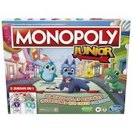 Monopoly Junior de Hasbro est un jeu de société éducatif conçu pour les enfants à partir de 4 ans. Ce jeu propose deux niveaux de difficulté via un plateau double face : un niveau simple pour le comptage et l'association, et un niveau avancé axé sur les mathématiques et la lecture. Il comprend des p
