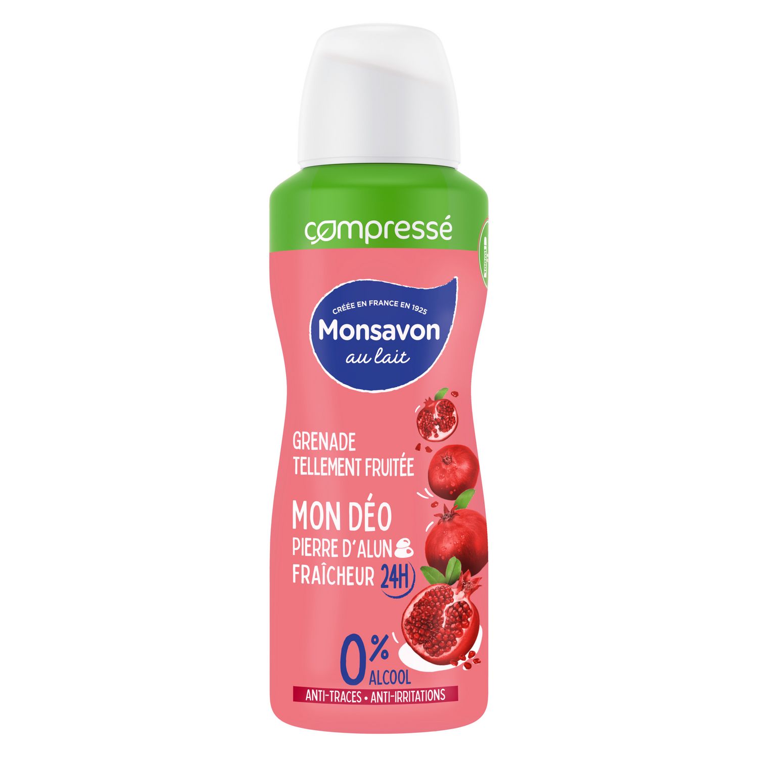 Déodorant spray compressé 24h 0% grenade fraîche à la pierre d'alun