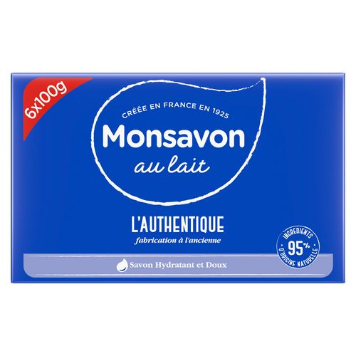 Depuis 1925, notre savon solide L'Authentique s'est imposé comme un incontournable de la salle de bain des français. Composé à 95% d'ingrédients d'origine naturelle, il nettoie en douceur et hydrate la peau. Son parfum emblématique aux notes subtiles de lavande laisse la peau douce, fraîche et délicatement parfumée. Idéal pour une utilisation quotidienne sur le corps et les mains, L'Authentique est fabriqué selon un savoir-faire traditionnel, avec une base lavante d'origine végétale. Disponible en format 6 x 100 g. Existe aussi en gel douche et autres formats solides.
