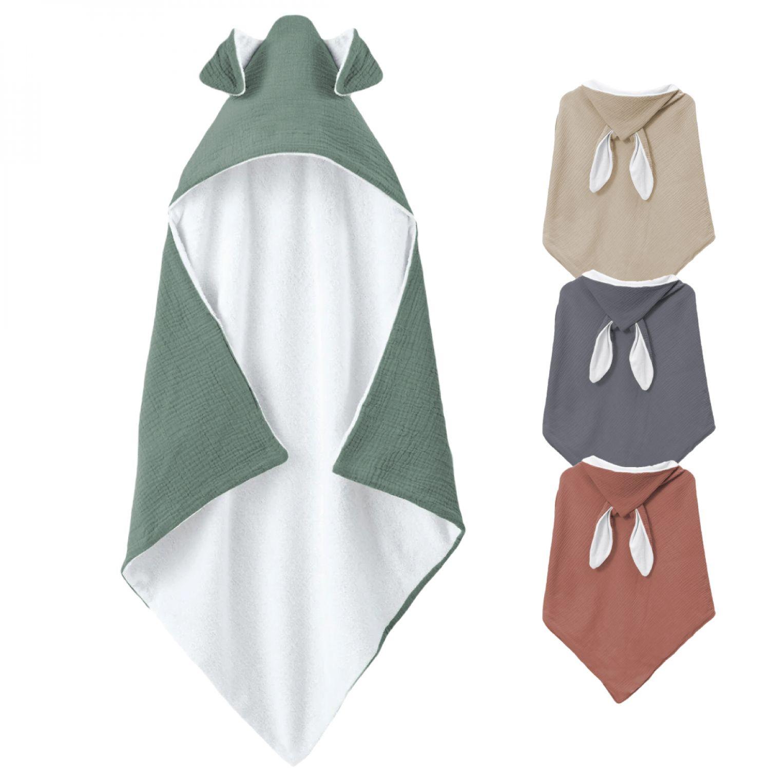 Cape, sortie de bain pour bébé intérieur 100 % coton - 75 x 75 cm - Lapin