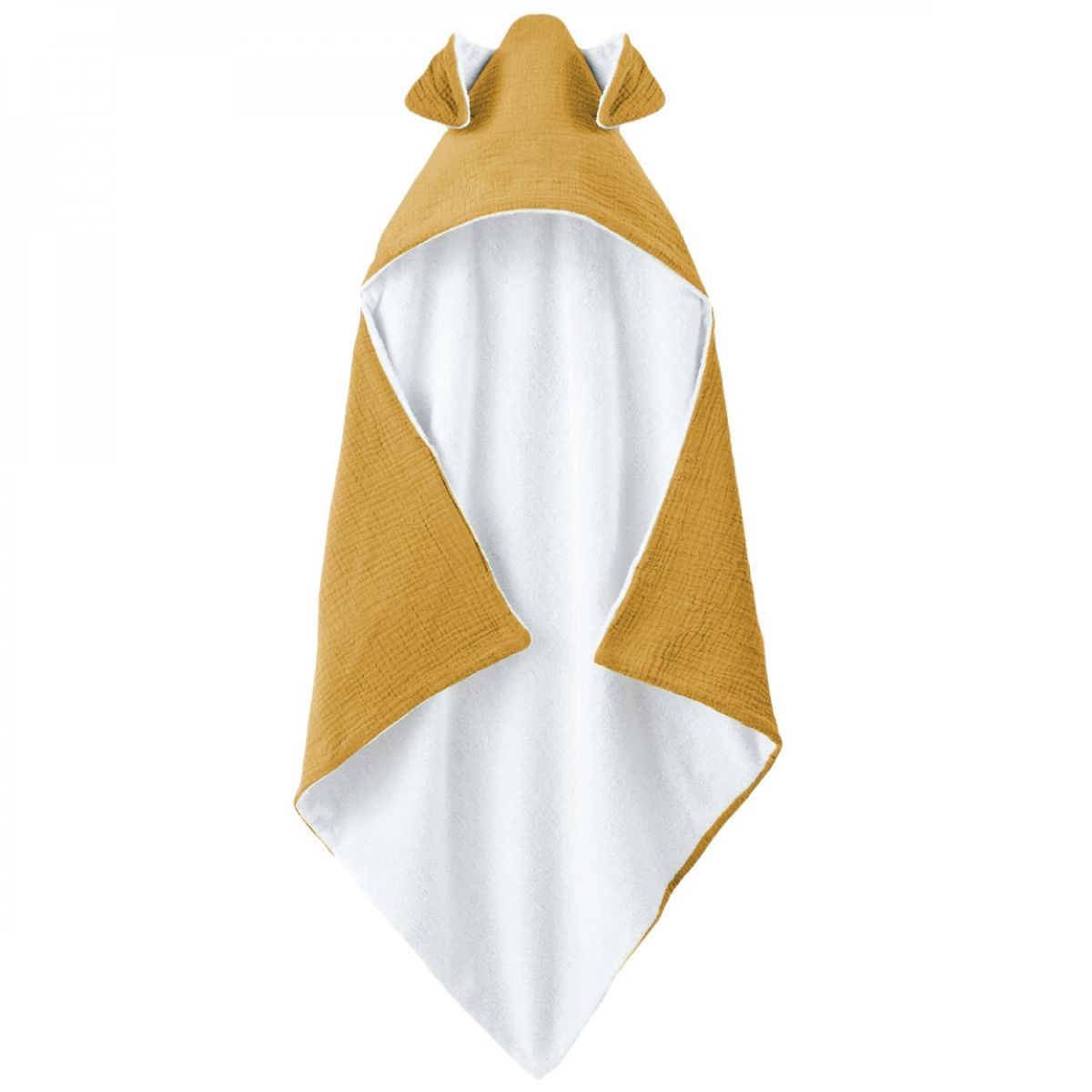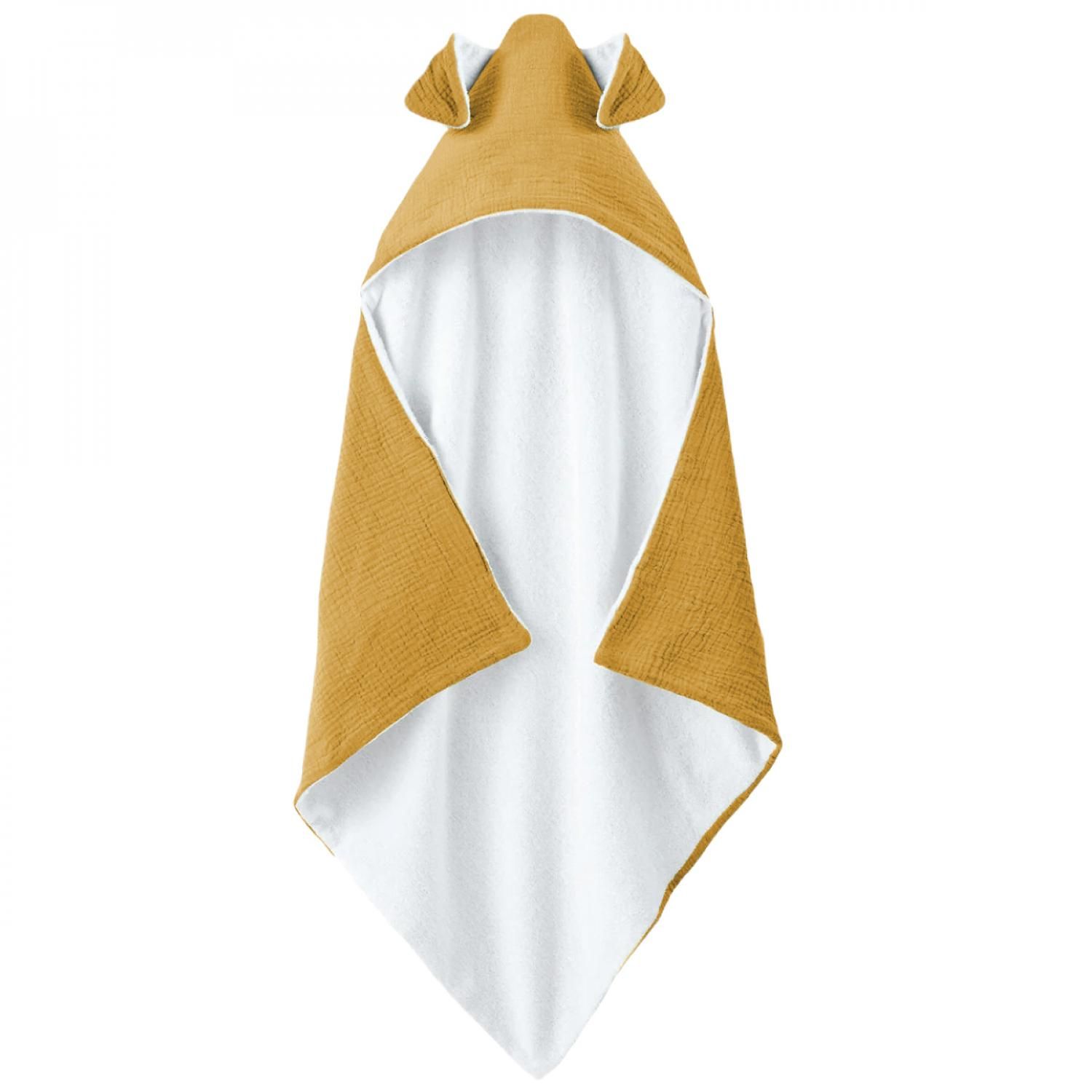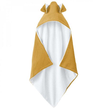 Cape, sortie de bain pour bébé intérieur 100 % coton - 100 x 100 cm - Lapin - Moutarde