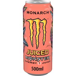 Juiced Monster Monarch 500 ml - boisson énergétique gazeuse avec de la taurine, de la L-carnitine, de l'inositol et des vitamines B. Monster Energy Juiced Monarch a un goût léger et subtil avec des notes de pêche et de nectarine.Servir froid pour un