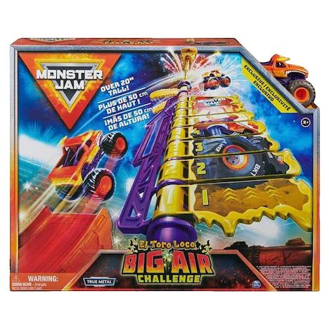 Le Monster Jam El Toro Loco Big Air Challenge de la marque Aster est un jeu de qualité conçu pour les enfants à partir de 3 ans. Ce set comprend un camion monstre El Toro Loco à l'échelle 1:64, un lanceur et un panneau cible pour marquer les exploits des petits cascadeurs. Fabriqué en plastique, ce