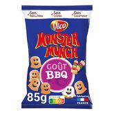 Petits monstres saveur barbecue au bon goût de pomme de terre. D'une texture légère et croustillante, les Monster Munch peuvent être dégustés en différentes occasions. A l'apéritif en compagnie des parents ou lors d'un petit creux après le sport, ils seront aussi appréciés comme accompagnement en complément d'un repas équilibré. Une recette certifiée qualité Vico, sans colorant, sans conservateur, sans huile de palme et fabriquée en France.