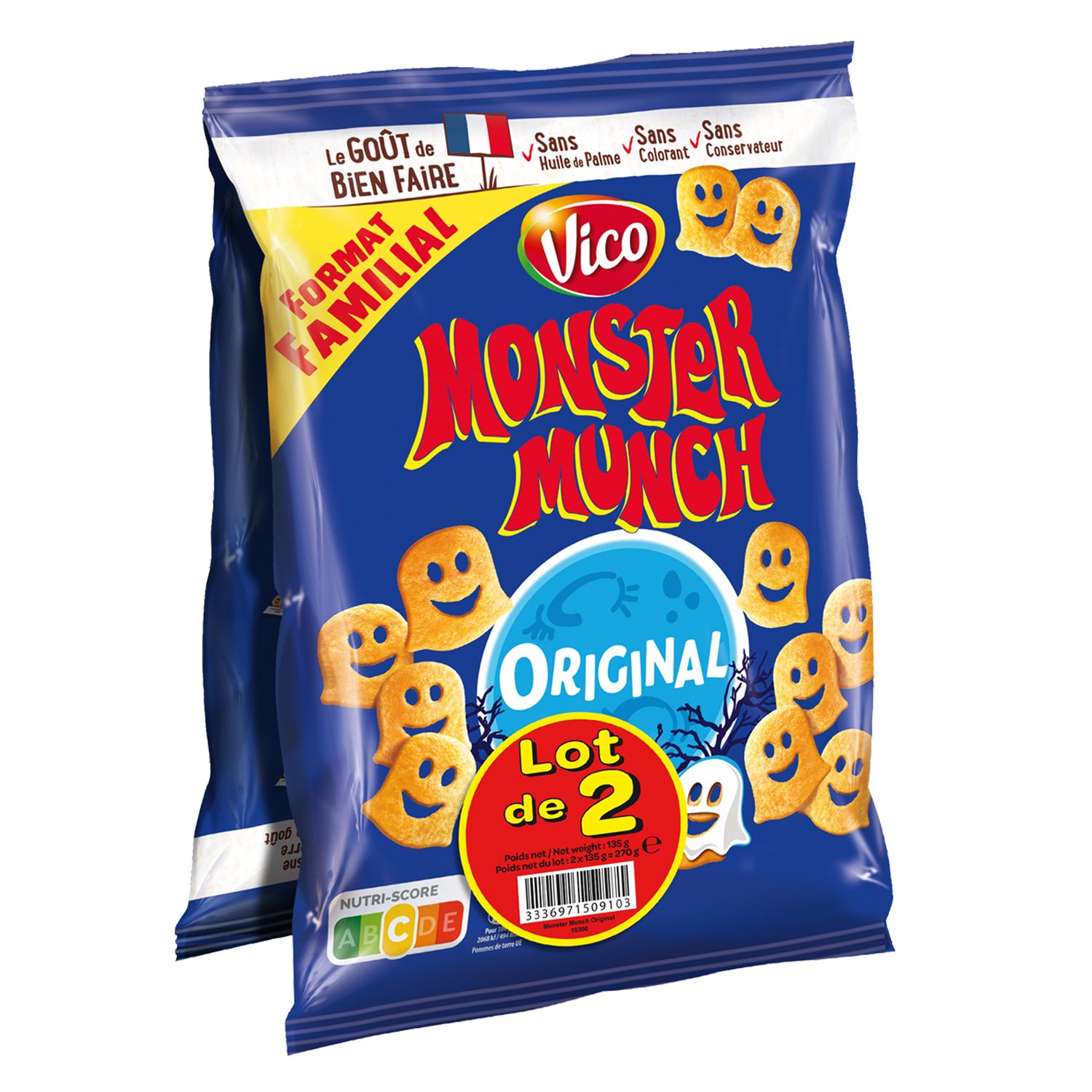 Petits monstres salés au bon goût de pomme de terre . D'une texture légère et croustillante, les Monster Munch peuvent être dégustés en différentes occasions. A l'apéritif en compagnie des parents ou lors d'un petit creux après le sport, ils seront aussi appréciés comme accompagnement en complément d'un repas équilibré.
