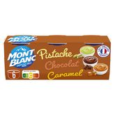 Crème dessert à la pistache, saveur pistache. Crème dessert au chocolat. Crème dessert au caramel, saveur caramel.