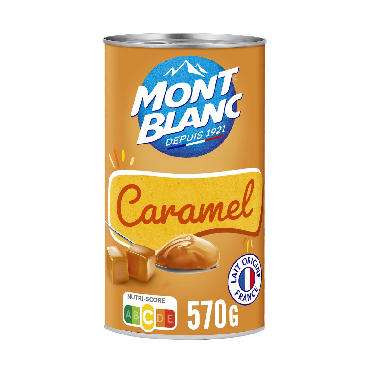 LAIT origine France 78 % (LAIT entier concentré, poudre de LAIT écrémé), caramel 10 % (sucre, eau), sirop de glucose, amidon de maïs, amidon transformé de maïs, sucre, épaississants : alginate de sodium - gomme guar, arôme, correcteur d'acidité : hydroxyde de sodium.