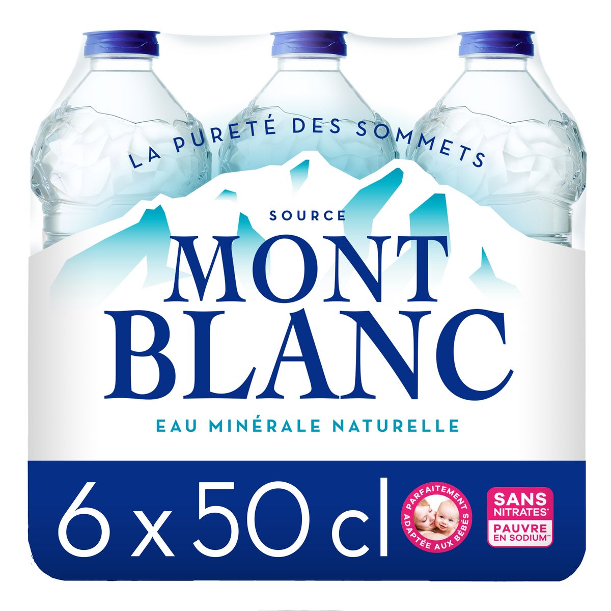 Mont Blanc est une eau de qualité, à la saveur douce et agréable. Faiblement minéralisée et sans nitrates, Mont Blanc est recommandée pour l'alimentation des nourrissons. Elle convient aussi aux personnes soumises à un régime pauvre en sodium.