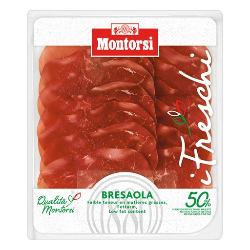 Spécialité de bœuf typique des Alpes Italiennes Centrales, elle est obtenue à partir des meilleurs morceaux de la cuisse de bœuf, délicatement assaisonnés avec un mélange de sel et d'épices. Coupées très finement, les tranches ont une couleur rouge vif et un parfum délicat et légèrement aromatique. Particulièrement maigre, il suffit de l’assaisonner d’un simple filet d’huile d’olive et d’un peu de citron pour obtenir un plat gastronomique, raffiné et léger.