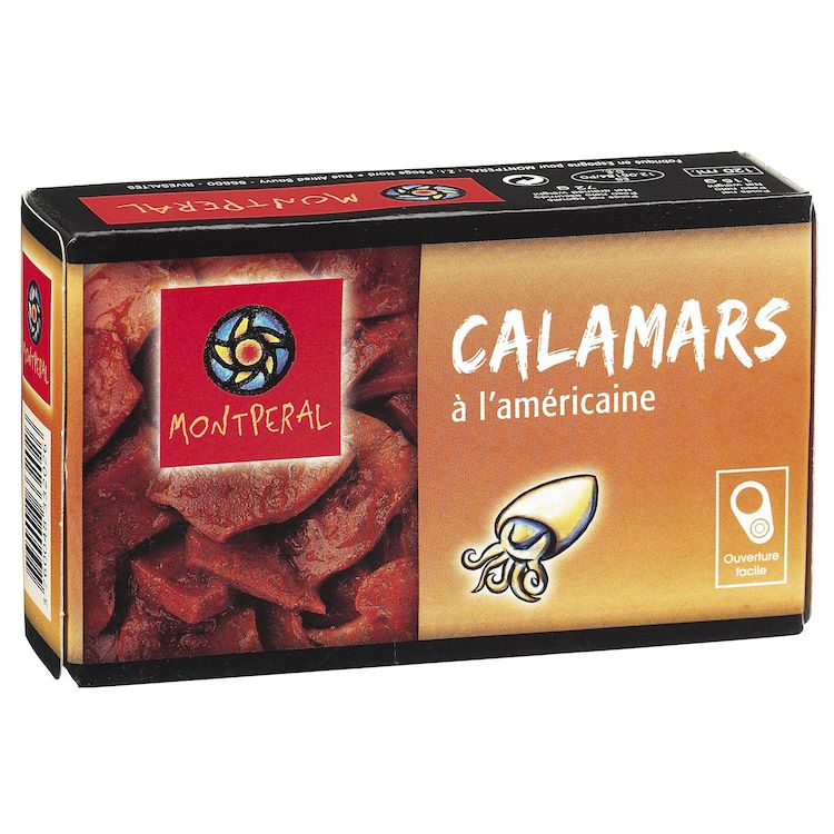 Calamars (Dosidicus spp), huile de tournesol, oignons, tomates épices et sel.
