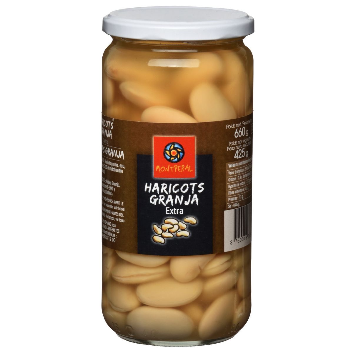 Haricots Granja, eau, sel, antioxydant E-300 et métabiSULFITES de sodium (Sulfites).