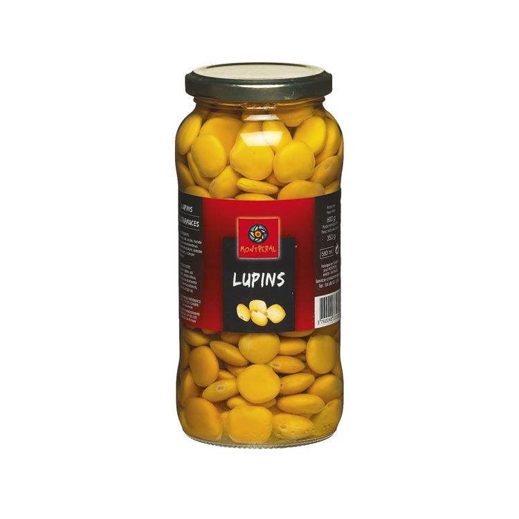 Ingrédients : Lupins, eau, sel, acidifiant : (acide citrique E-330) et antioxydant : acide ascorbique E-300.