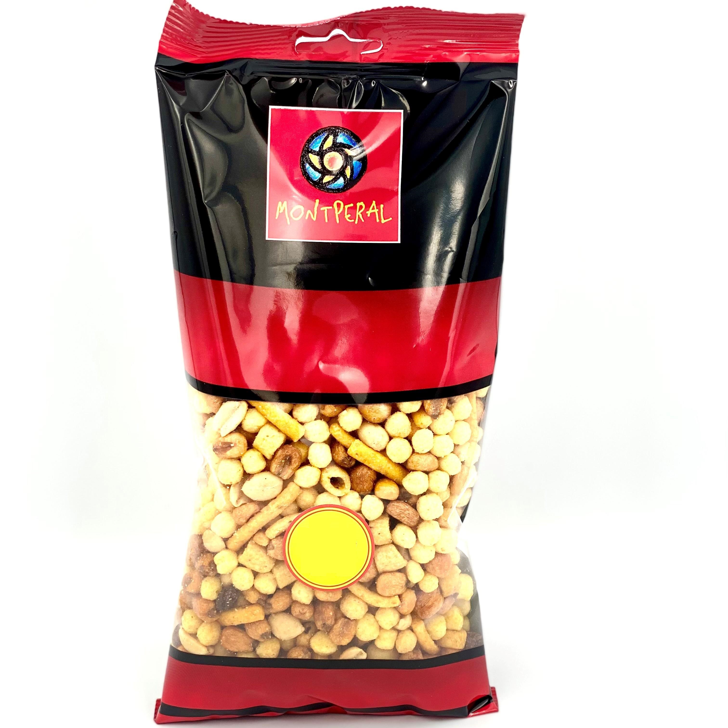 Ingrédients : Apéritif de mais barbecue (43,7%), mais soft grillé barbecue (34,1%), CACAHUÈTE frite (20%), raisins sultanes (2,2%), huiles végétales (tournesol, palme), sel, sucre, et arôme barbecue (arômes, exhausteur de goût (E621, E631, E627), colorant (E160c), acidifiant (E330)). Contient SULFITES. Peut contenir des traces de gluten, arachides, fruits à coque, soja, lactose, moutarde et sésame.