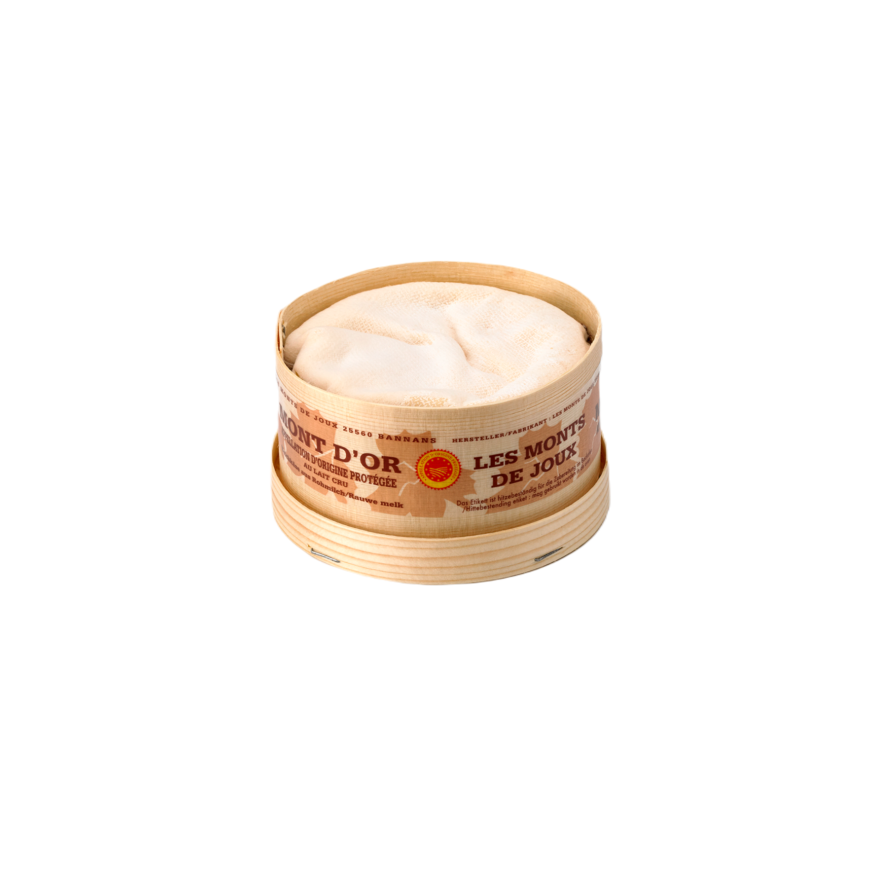 Fromage à pâte molle entouré d'une sangle d'épicéa, présenté dans sa boîte, ce qui lui apporte un goût boisé, typique du mont d'or. Pâte fondante, allant jusqu'à couler. A manger froid ou chaud (recette du mont d'or chaud au four disponible sur internet).