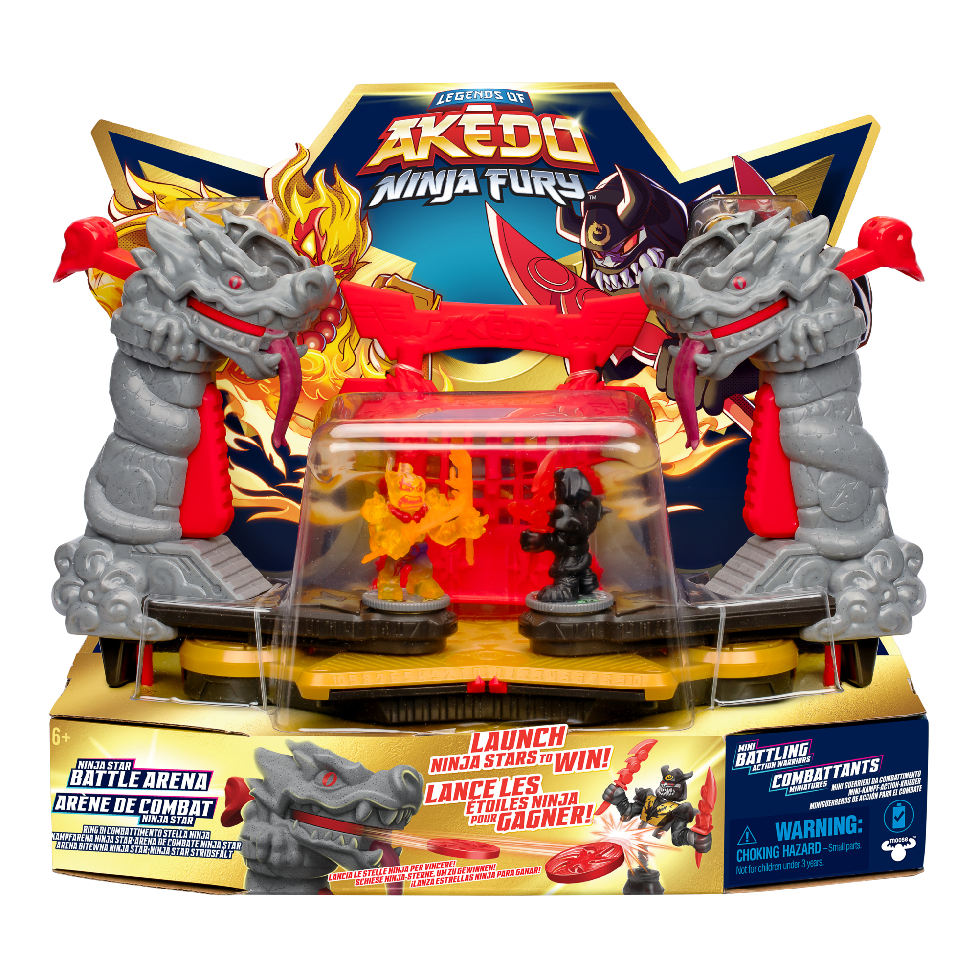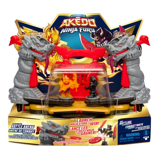Plongez dans l'univers palpitant d'Akedo avec l'Arène de Combat Ninja Fury, conçue pour des duels spectaculaires. Cette arène interactive inclut des lanceurs de shurikens innovants et des effets sonores immersifs pour recréer l'intensité d'un véritable combat de ninjas.