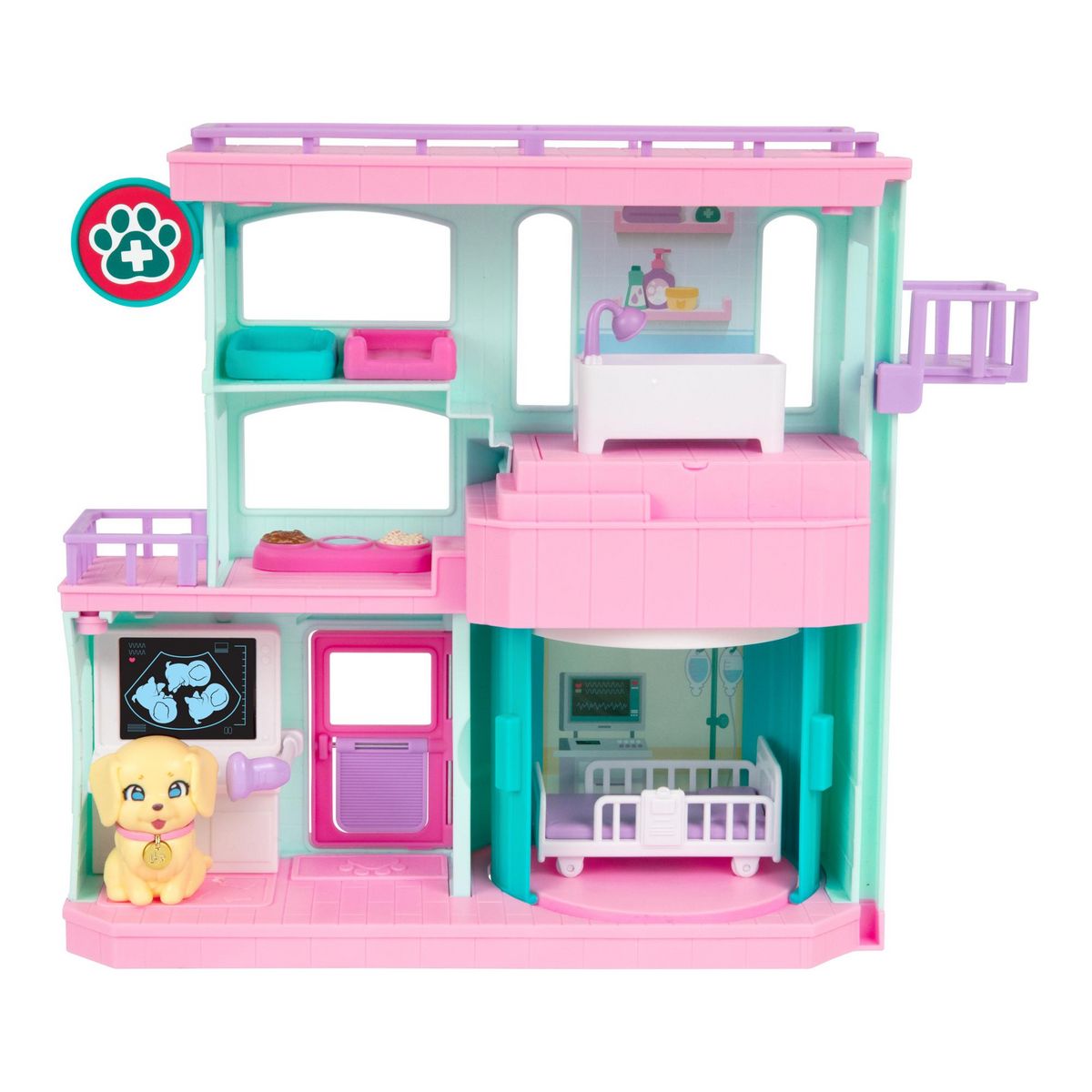 Une adorable petite maman chien attend des bébés. Occupe-toi d’elle dans ce set de jeu clinique vétérinaire plein de surprises et regarde ses bébés apparaître comme par magie !