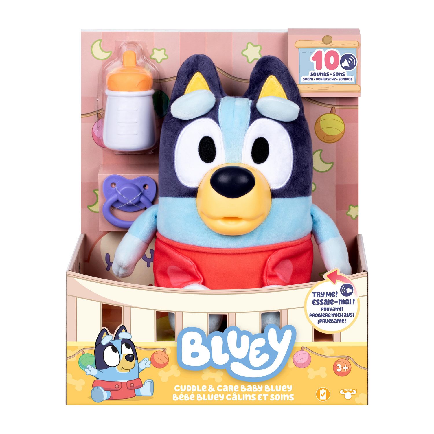 Prends soin de Bébé Bluey ! Donne-lui sa tétine, son biberon et appuie sur son ventre pour entendre ses adorables sons de bébé.