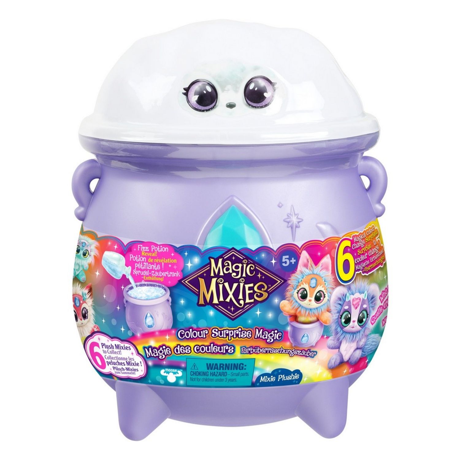 Révèle la magie grâce au chaudron magique ! Ajoute la poudre pétillante, le parchemin avec le nom de ta créature Mixie et de l’eau pour créer ta potion ! Observe ta potion bouillonner et pétiller pour révéler ton Mixie ! Quelle créature magique vas-tu découvrir ? Il existe 6 peluches Mixie à collectionner.