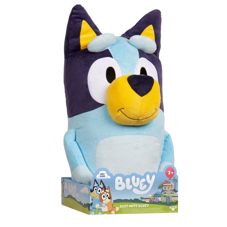 Cette grande peluche Bluey de 45 cm, est l’amie idéale pour des mégas gros câlins ! Une peluche ultra-douce à câliner en regardant les dessins animés ou en écoutant l’histoire du soir. Bluey est conçue avec des tissus de qualité très doux et présente des broderies et finitions détaillées