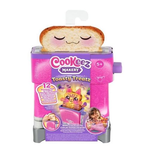Le Cookeez Makery Toasty Treatz est un grille-pain interactif de la marque MOOSE TOYS, conçu pour offrir une expérience ludique et sensorielle aux enfants. Ce jouet permet aux petits chefs de créer leur propre peluche parfumée en forme de toast, en utilisant un système simple et amusant. En insérant une carte en forme de pâtisserie dans le grille-pain et en actionnant la poignée, les enfants peuvent découvrir une nouvelle peluche parfumée, simulant l'expérience d'un petit déjeuner avec un Pop-Tart.