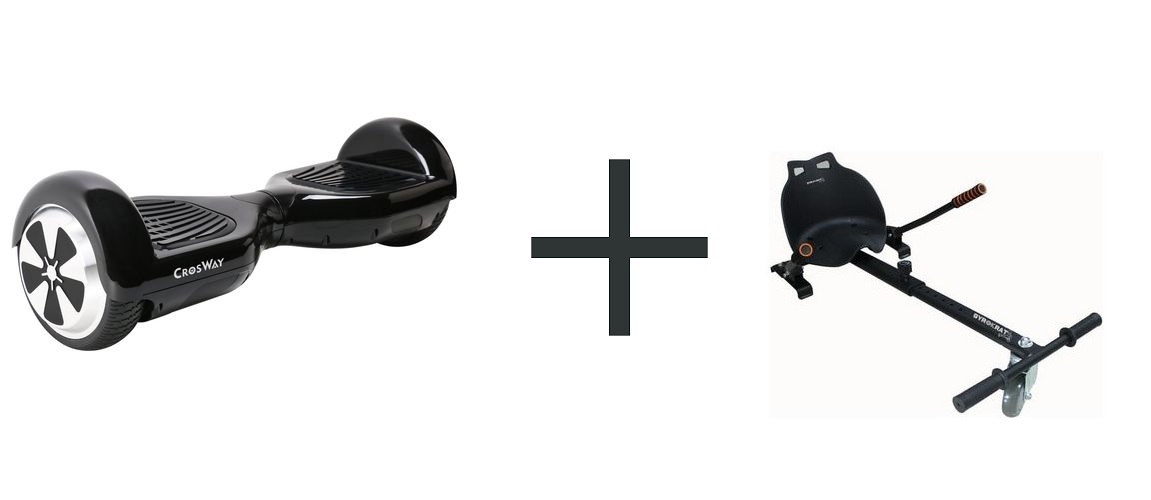 Pack CROSWAY Hoverboard N1 Noir + Kart pour hoverboard avec siège GYROBOARDER