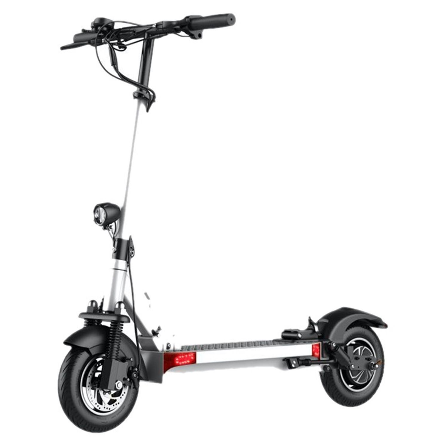 Profitez d'un confort de glisse, grâce à ses roues pleines de 10 pouces (25,4 cm de diamètre), et également d'une sécurité accrue, grâce à son frein à disque à l'avant, et de ses feux à l'avant/l'arrière.