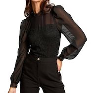 Craquez pour le body femme Morgan !Manches longues bouffantesCol montantColoris : NoirDentelleCoupe ajustéeComposition : 4% Elasthanne , 72% Polyamide , 24% Viscose