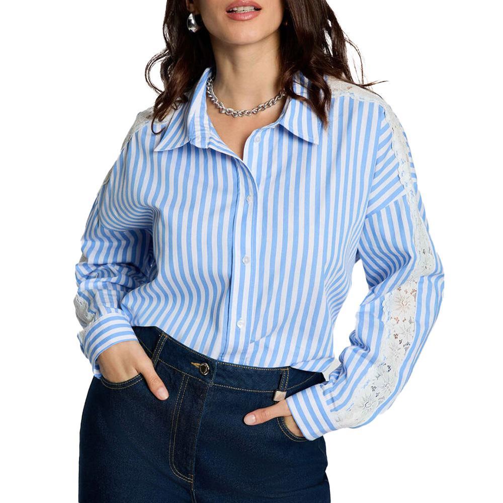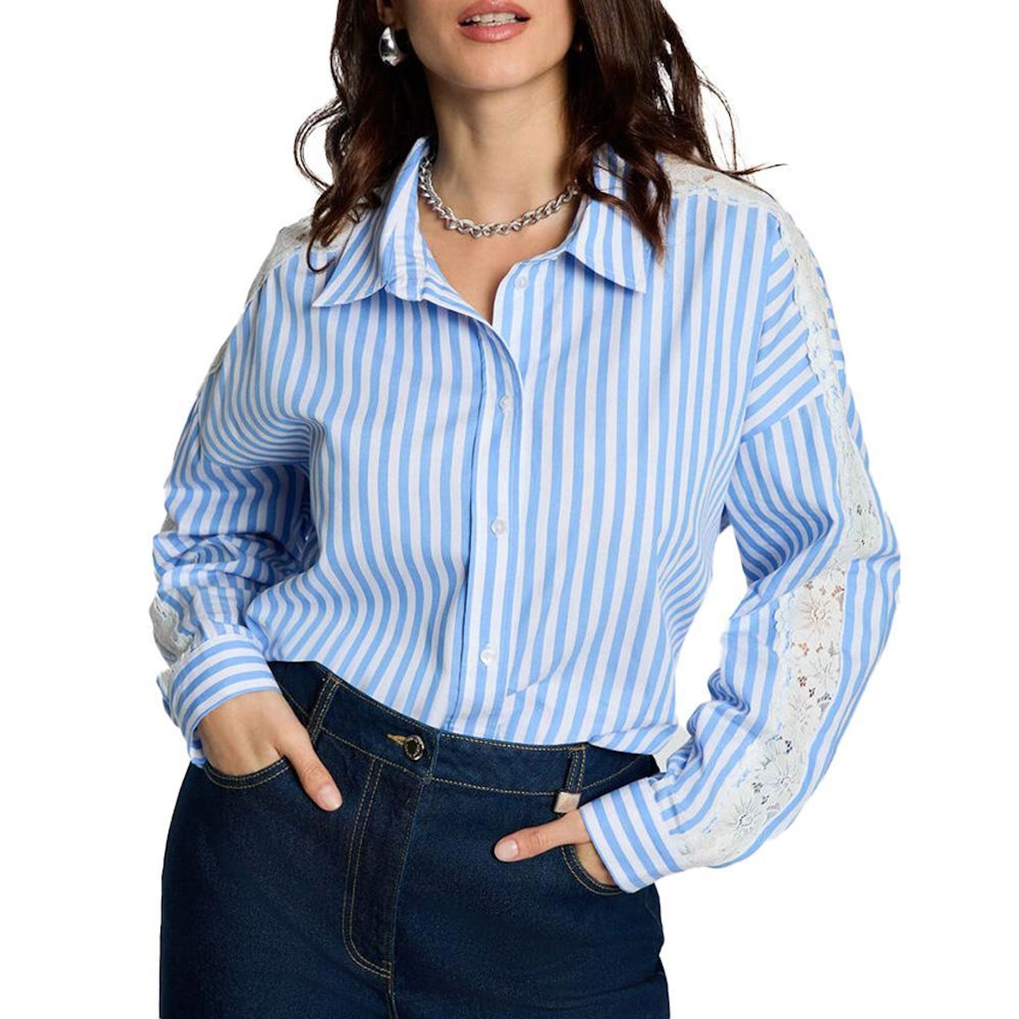 Optez pour la chemise femme Morgan !Manches longuesFermeture à boutonsRayuresDentelle sur les manchesComposition : 100% coton