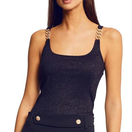 Craquez pour la Débardeur de la marque MORGAN !Coloris : MarineCol rond BretellesComposition : 78% Viscose, 16% Polyester, 6% Textile