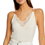 Optez pour ce débardeur de la marque Morgan ! Coloris : écru Composition : 86 % polyamide, 14 % élasthanne Col V Détails dentelé
