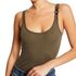 Craquez pour le débardeur femme de la marque Morgan Bretelles larges Col rond Coloris : Kaki Détails fils métallisés Ornements métalliques aux épaules Composition : 77% viscose , 15% polyester , 8% fil métallique