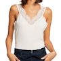 Débardeur femme de la marque Morgan- Bretelles à dentelle- Col V- Coloris : Ecru- Composition : 95% viscose , 5% élasthanne