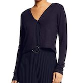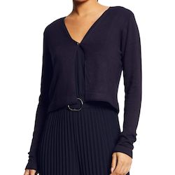 Gilet femme de la marque Morgan Manches longues Fermeture à bouton sur l'avant Coloris : Marine Maille fine Coupe courte Composition : 82% viscose , 16% polyamide , 2% élasthanne