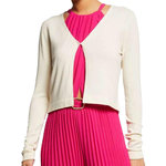 Gilet femme de la marque MorganManches longuesFermeture à bouton sur l'avantColoris : Blanc Maille fineCoupe courteComposition : 82% viscose , 16% polyamide , 2% élasthanne