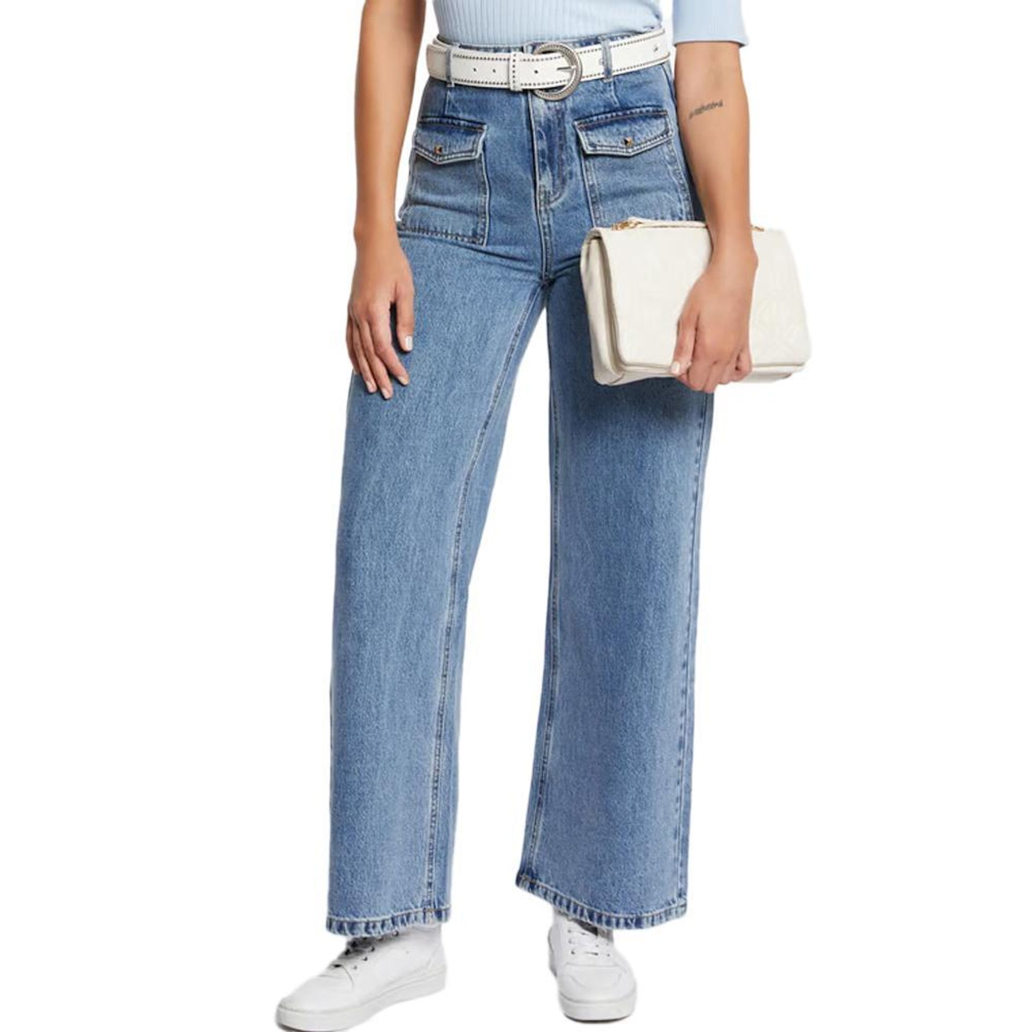 Optez pour le jean femme Morgan !Taille hauteCoupe large4 pochesPassants à la tailleComposition : 100% coton