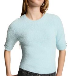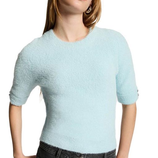 Optez pour le pull e la marque MORGAN ! Coloris : turquoise Pull manches courtesCoupe droiteCol rondManches courtesMaille duveteuseBoutons décoratifs aux manchesComposition : 71% POLYAMIDE 29% POLYESTER