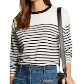 Optez pour ce pull MorganComposition : 52% viscose 31% polyester 17% polyamideCoupe ajustéeCol rondManches longuesFine mailleRayures horizontalesBande contrastante à l'encolure