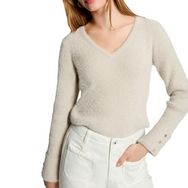 Optez pour ce pull de la marque MORGANComposition : 5% Fil Metallise, 86%Polyamide, 9% PolyesterColoris : Beige Manches longuesDétails dorésCol rond