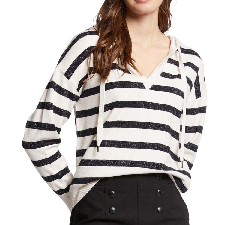 Craquez pour ce pull de la marque MORGANColoris : Ecru, MarineCol VManches longuesAvec capucheComposition : 46% viscose, 33% polyamide, 19% fil métallisé
