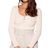 Pull femme de la marque Morgan Manches longues Col V Boutons sur l'avant Tissu côtelé Coloris : Écru Composition : 100% polyester