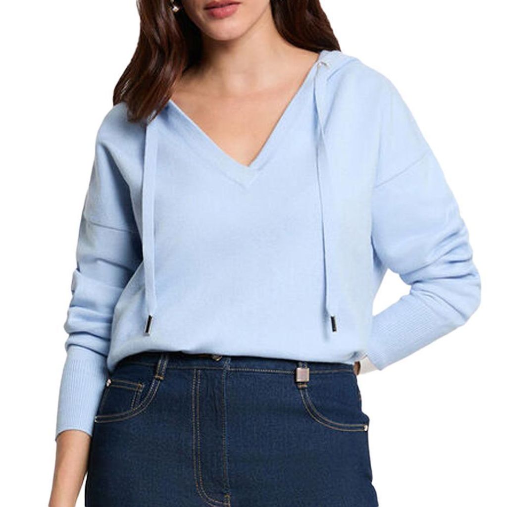 Optez pour ce pull Morgan à prix bas !Composition : 52% viscose 30% polyester 18% polyamideColoris : BleuManches longuesAvec capuche
